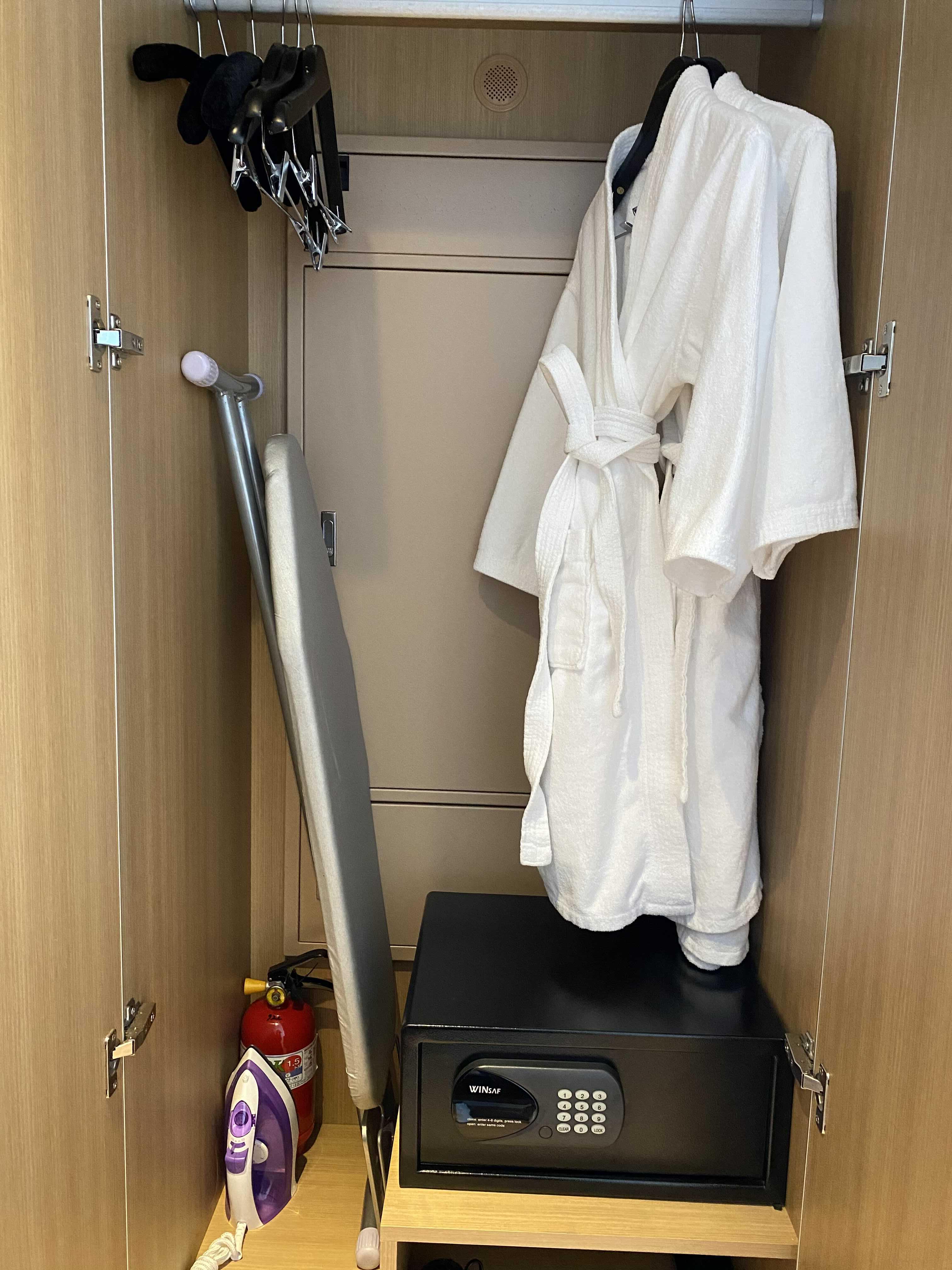 옷장 안에는 샤워가운과 드라이기가 들어있습니다.